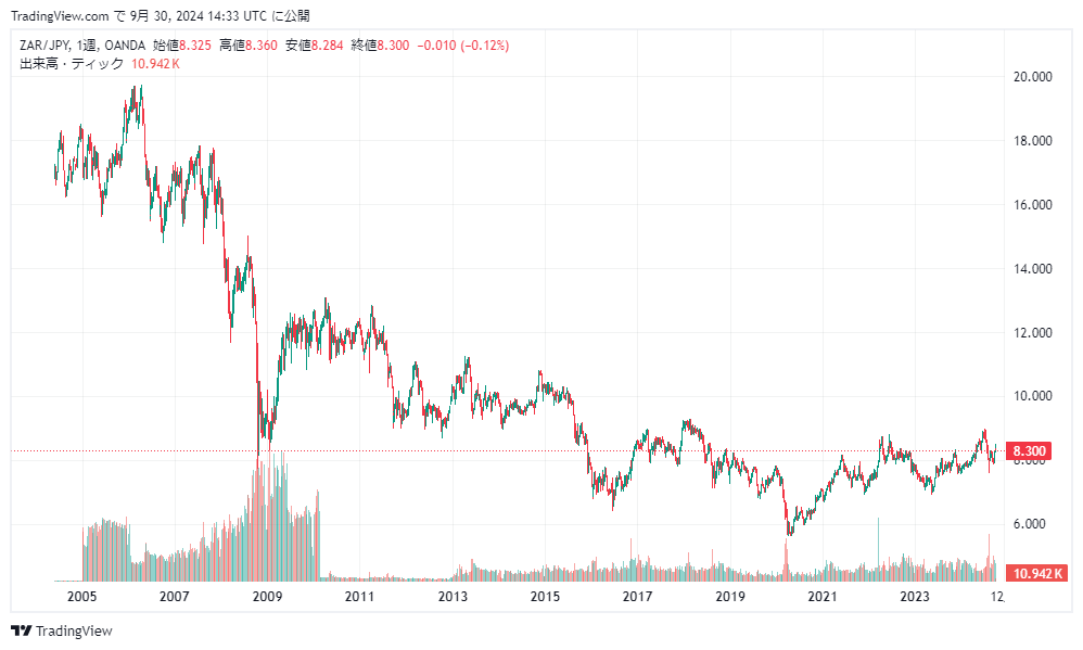 The South African Rand is historically one of the currencies with very volatile value; notably, during the resource-price boom in the 2000s its value rose rapidly. However, during global economic crises such as the Lehman Shock and the COVID-19 shock, it experienced sharp declines, and many investors incurred losses as a result.