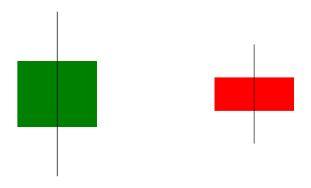 Para compreender o padrão de vela Harami, é eficaz desenhá‑lo em um gráfico real. Por exemplo, desenhando uma vela de alta grande no gráfico e depois desenhando uma vela de baixa que se encaixa perfeitamente ao lado, você pode captar visualmente as características desse padrão. Abaixo está um exemplo da visualização desse padrão.